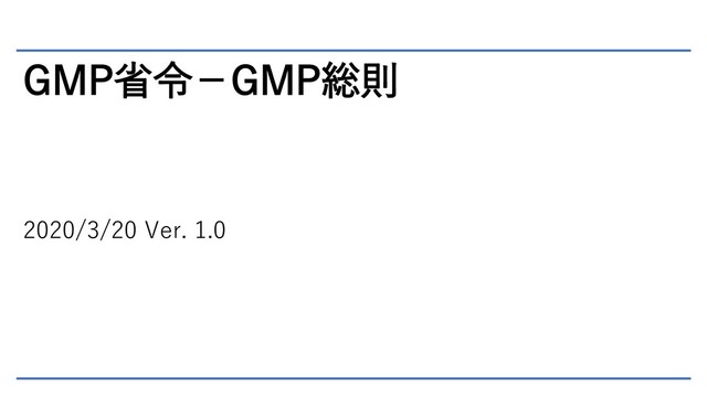 GMP省令-GMP総則 2020/3/20 Ver. 1.0
