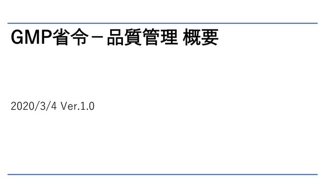 GMP省令-品質管理 概要 2020/3/4 Ver.1.0