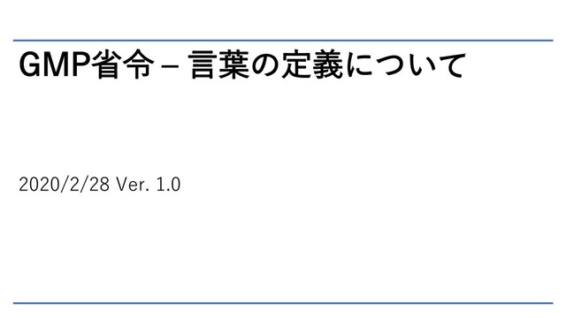 GMP省令 – 言葉の定義について 2020/2/28 Ver. 1.0