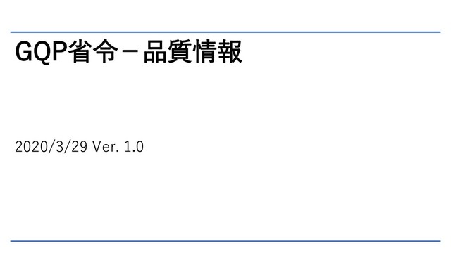 GQP省令-品質情報 2020/3/29 Ver. 1.0