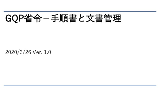 GQP省令-手順書と文書管理 2020/3/26 Ver. 1.0