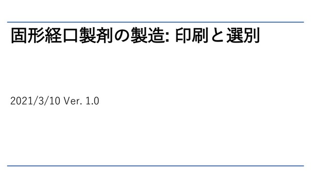 固形経口製剤の製造: 印刷と選別 2021/3/10 Ver. 1.0