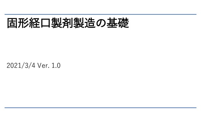 固形経口製剤製造の基礎 2021/3/4 Ver. 1.0