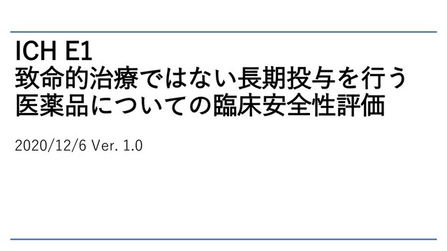 ICH E1 致命的治療ではない長期投与を行う 医薬品についての臨床安全性評価 2020/12/6 Ver. 1.0