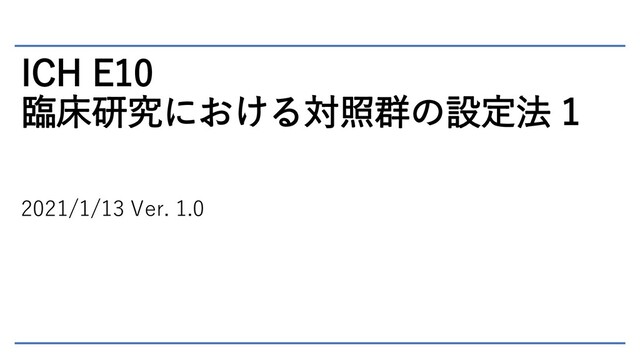 ICH E10 臨床研究における対照群の設定法 1 2021/1/13 Ver. 1.0