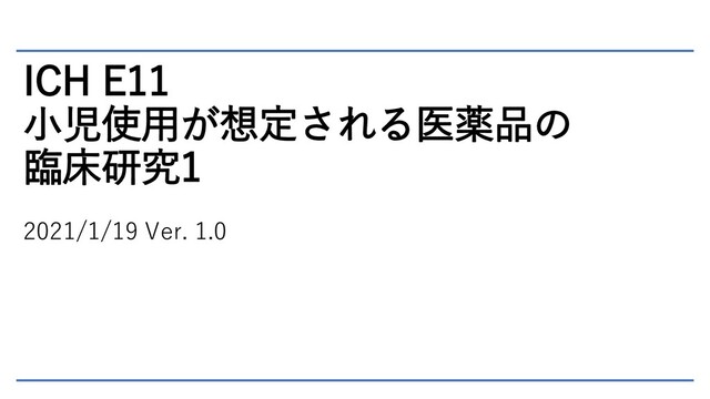 ICH E11 小児使用が想定される医薬品の 臨床研究1 2021/1/19 Ver. 1.0