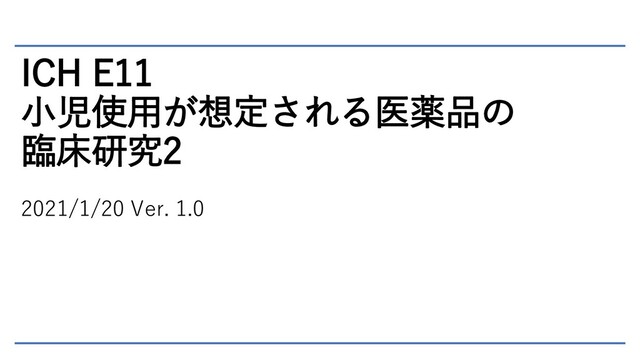 ICH E11 小児使用が想定される医薬品の 臨床研究2 2021/1/20 Ver. 1.0