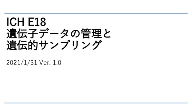ICH E18 遺伝子データの管理と 遺伝的サンプリング 2021/1/31 Ver. 1.0