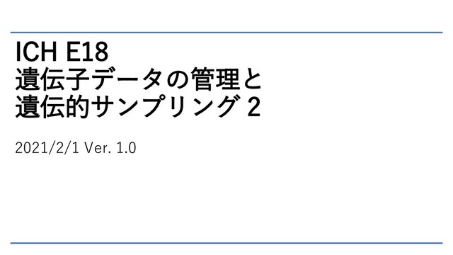ICH E18 遺伝子データの管理と 遺伝的サンプリング 2 2021/2/1 Ver. 1.0