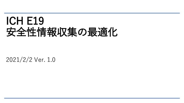 ICH E19 安全性情報収集の最適化 2021/2/2 Ver. 1.0