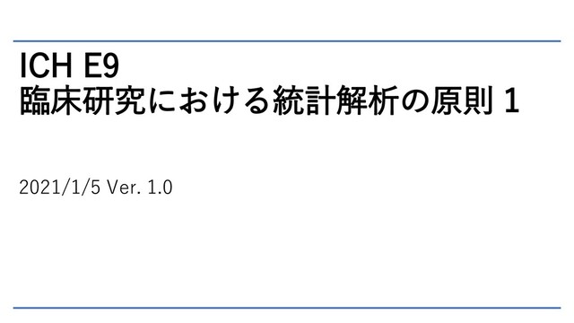 ICH E9 臨床研究における統計解析の原則 1 2021/1/5 Ver. 1.0