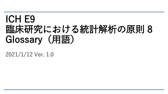 ICH E9 臨床研究における統計解析の原則 8 Glossary(用語) 2021/1/12 Ver. 1.0