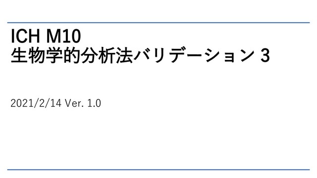 ICH M10 生物学的分析法バリデーション 3 2021/2/14 Ver. 1.0