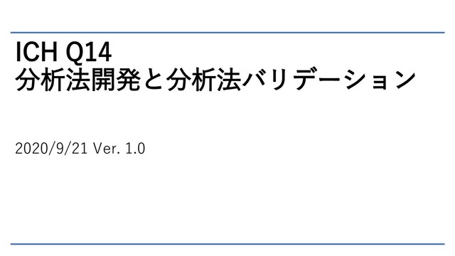 ICH Q14 分析法開発と分析法バリデーション 2020/9/21 Ver. 1.0