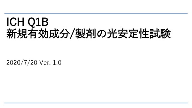 ICH Q1B 新規有効成分/製剤の光安定性試験 2020/7/20 Ver. 1.0