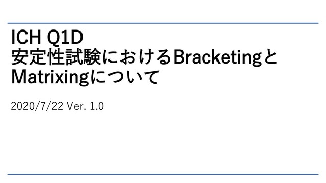 ICH Q1Dは安定性試験におけるBrancketingとMatrixingについてのガイドラインです。BrancketingとMatrixingは共に試験を部分的に省略する方法で、特定の状況において安定性試験の試験モデルとして利用することができます。
