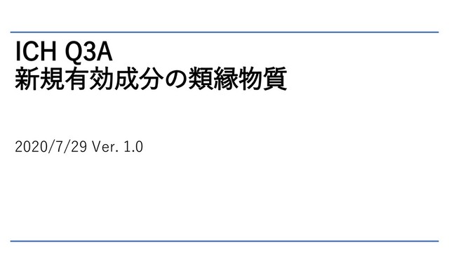 ICH Q3A 新規有効成分の類縁物質 2020/7/29 Ver. 1.0