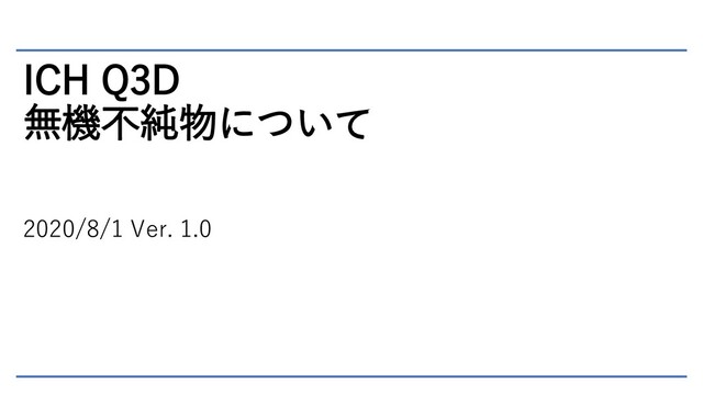 ICH Q3D 無機不純物について 2020/8/1 Ver. 1.0