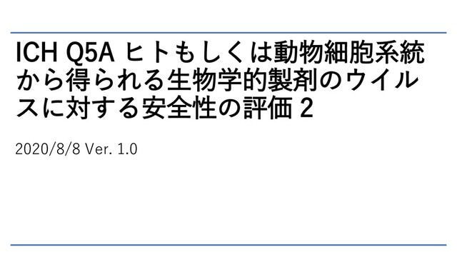 ICH Q5A ヒトもしくは動物細胞系統 から得られる生物学的製剤のウイル スに対する安全性の評価 2 2020/8/8 Ver. 1.0