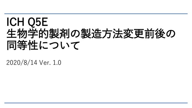ICH Q5E 生物学的製剤の製造方法変更前後の 同等性について 2020/8/14 Ver. 1.0