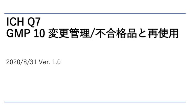 ICH Q7 GMP 10 変更管理/不合格品と再使用 2020/8/31 Ver. 1.0