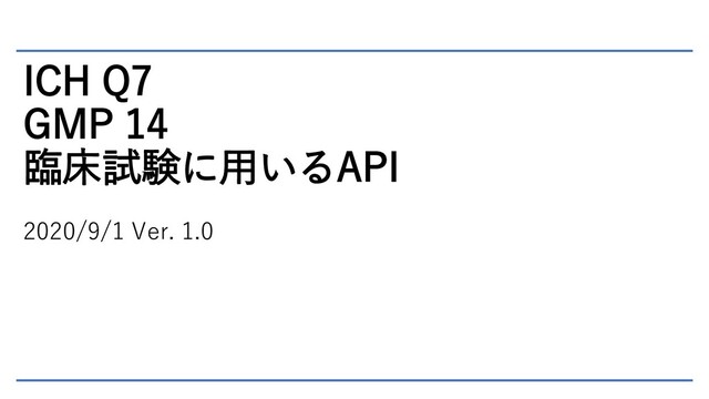 ICH Q7 GMP 14 臨床試験に用いるAPI 2020/9/1 Ver. 1.0