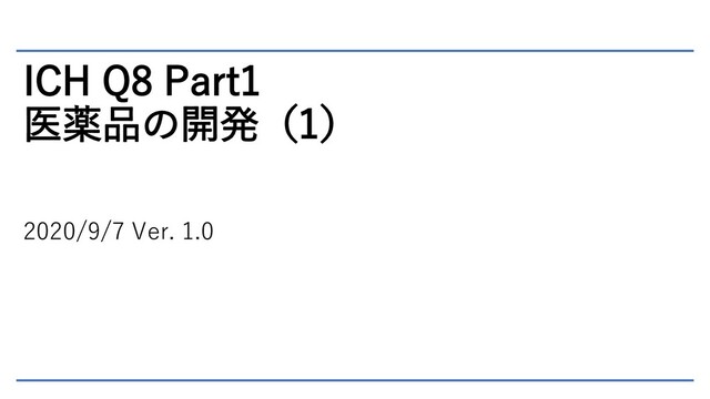 ICH Q8 Part1 医薬品の開発(1) 2020/9/7 Ver. 1.0