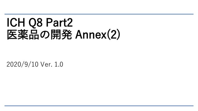 ICH Q8 Part2 医薬品の開発 Annex(2) 2020/9/10 Ver. 1.0