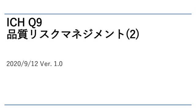 ICH Q9 品質リスクマネジメント(2) 2020/9/12 Ver. 1.0