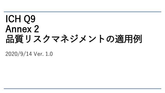 ICH Q9 Annex 2 品質リスクマネジメントの適用例 2020/9/14 Ver. 1.0