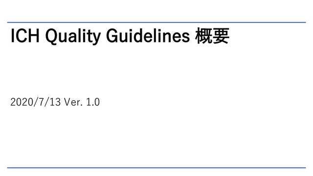 ICH Quality Guidelines 概要 2020/7/13 Ver. 1.0