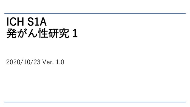 ICH S1A 発がん性研究 1 2020/10/23 Ver. 1.0