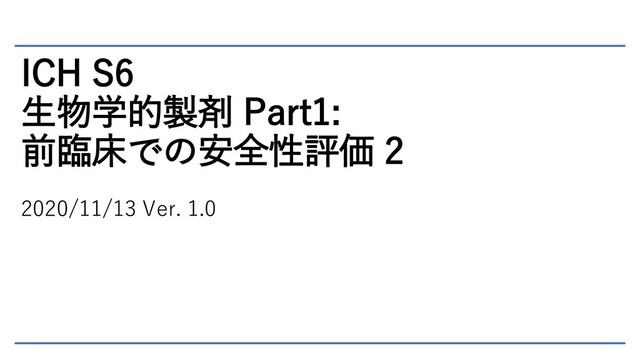 ICH S6 生物学的製剤 Part1: 前臨床での安全性評価 2 2020/11/13 Ver. 1.0