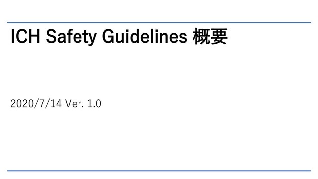 ICH Safety Guidelines 概要 2020/7/14 Ver. 1.0