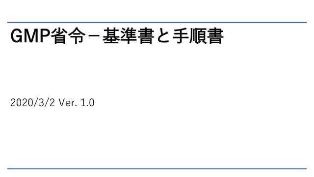 GMP省令-基準書と手順書 2020/3/2 Ver. 1.0