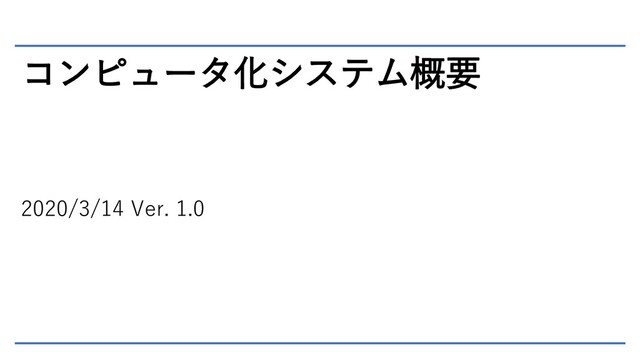 コンピュータ化システム概要 2020/3/14 Ver. 1.0