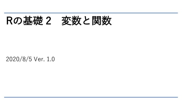 Rの基礎 2 変数と関数 2020/8/5 Ver. 1.0
