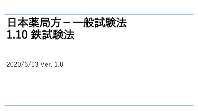 日本薬局方-一般試験法 1.10 鉄試験法 2020/6/13 Ver. 1.0