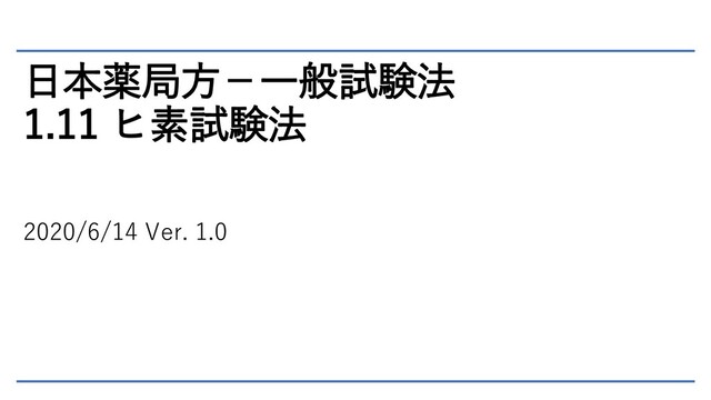 日本薬局方-一般試験法 1.11 ヒ素試験法 2020/6/14 Ver. 1.0
