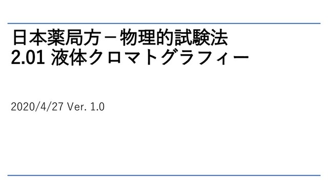 日本薬局方-物理的試験法 2.01 液体クロマトグラフィー 2020/4/27 Ver. 1.0