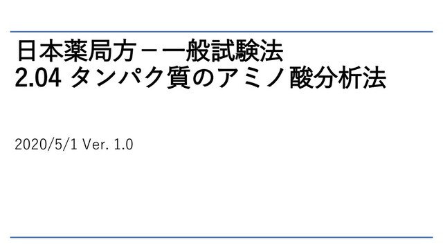日本薬局方-一般試験法 2.04 タンパク質のアミノ酸分析法 2020/5/1 Ver. 1.0