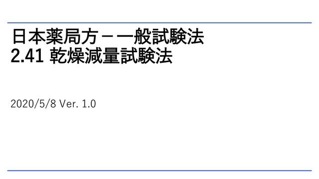 日本薬局方-一般試験法 2.41 乾燥減量試験法 2020/5/8 Ver. 1.0