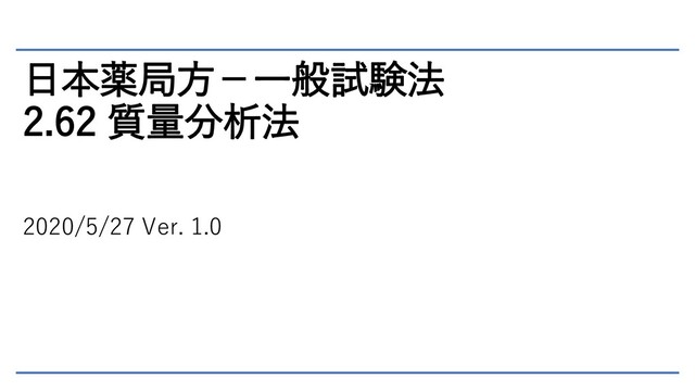 日本薬局方-一般試験法 2.62 質量分析法 2020/5/27 Ver. 1.0