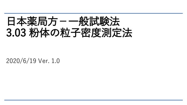 日本薬局方-一般試験法 3.03 粉体の粒子密度測定法 2020/6/19 Ver. 1.0