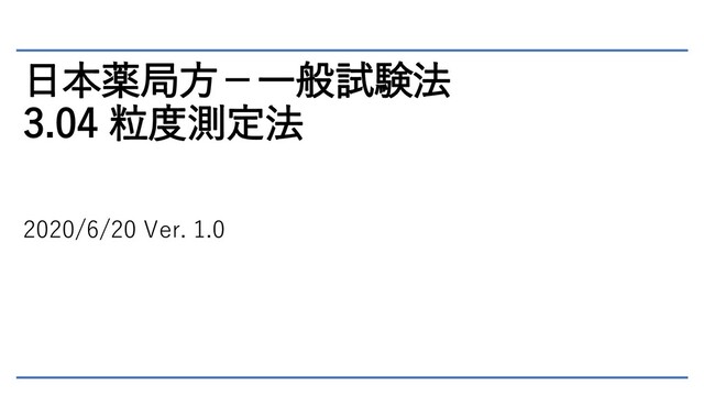 日本薬局方-一般試験法 3.04 粒度測定法 2020/6/20 Ver. 1.0