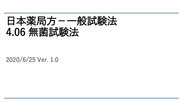 日本薬局方-一般試験法 4.06 無菌試験法 2020/6/25 Ver. 1.0