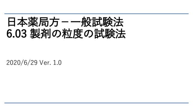 日本薬局方-一般試験法 6.03 製剤の粒度の試験法 2020/6/29 Ver. 1.0