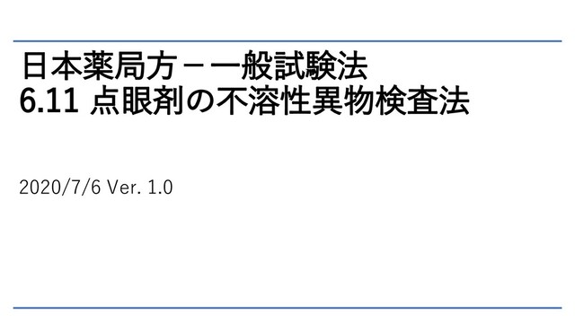 日本薬局方-一般試験法 6.11 点眼剤の不溶性異物検査法 2020/7/6 Ver. 1.0