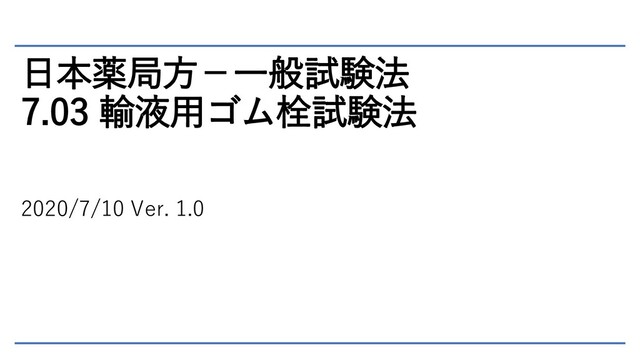 日本薬局方-一般試験法 7.03 輸液用ゴム栓試験法 2020/7/10 Ver. 1.0