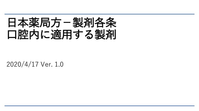 日本薬局方-製剤各条 口腔内に適用する製剤 2020/4/17 Ver. 1.0
